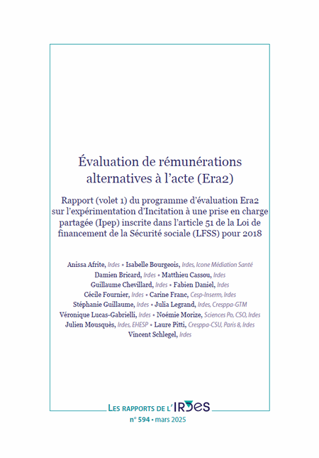 Le ministère de la Santé a défini un dispositif, dans le cadre de « l'article 51 » créé en 2017 par la Loi de financement de la Sécurité sociale (LFSS) pour 2018, qui offre la possibilité de mettre en œuvre des expérimentations dérogatoires aux règles tarifaires de droit commun pour une période maximale de cinq ans. L'enjeu est de faire émerger des organisations innovantes dans les secteurs sanitaires et médico-sociaux, afin d'améliorer la prise en charge du parcours des patients, l'efficience du système de santé et l'accès aux soins. L'expérimentation Incitation à une prise en en charge partagée (Ipep), d'envergure nationale et pilotée conjointement par des membres du ministère de la Santé et de l'Assurance maladie, entre dans ce cadre. Son évaluation a été confiée à l'Irdes et intégrée à un programme d'évaluation de rémunérations alternatives à l'acte (Era2). L'expérimentation Ipep a pour ambition de décloisonner la prise en charge des patients entre la ville et l'hôpital, d'optimiser les parcours de santé, et d'améliorer la qualité et la pertinence de la prise en charge. Pour ce faire, les groupements expérimentateurs reçoivent des incitations financières sous la forme, d'abord, de crédits d'amorçage versés selon, notamment, la taille de la patientèle « médecin traitant » des médecins engagés dans le groupement, puis sous la forme d'un « intéressement » collectif alloué au groupement, en complément de leurs modes de rémunération principaux (à l'acte pour les acteurs de la ville ou à l'activité pour les acteurs hospitaliers).