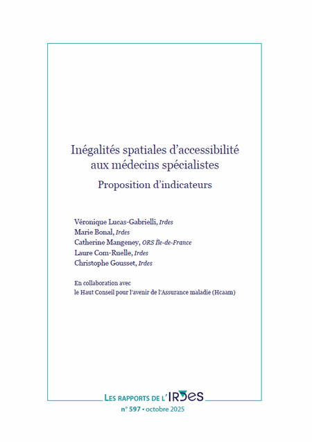 Dans ce contexte, la mesure des niveaux d'accessibilité spatiale aux soins médicaux est un enjeu pour qualifier la situation des territoires. En France, les indicateurs de type X step Floating Catchment Area déclinés sous la forme de l'accessibilité potentielle localisée (APL) pour un certain nombre de professions de santé relevant des soins primaires permettent de mesurer les disparités locales (entre communes) sur l'ensemble du territoire. Nous proposons dans ce rapport les adaptations nécessaires de l'indicateur APL pour son application aux médecins exerçant dans le champ de la médecine spécialisée ambulatoire, en intégrant à la caractérisation de l'offre une dimension tarifaire.